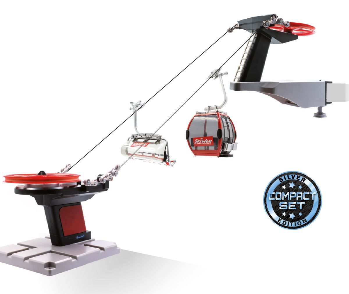 Black and red lift with 1 chairlift and 1 gondola