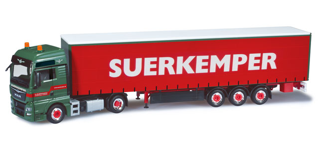 MAN TGX XXL Euro 6 curtain canvas semi trailer Suerkemper at 1/87 scale manufactured by HERPA in the category Camion miniature