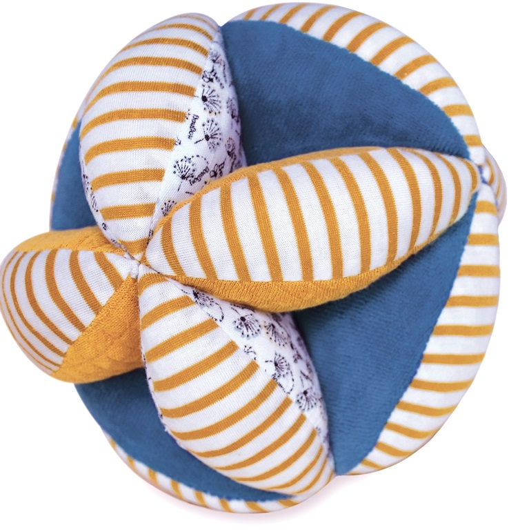 POLLEN L'ABEILLE BIO - Gripping balls with rattle mustard and blue stripes