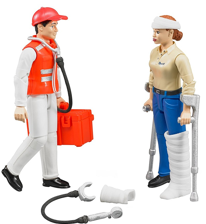 Personnages articulés femmes accidentée et secouriste avec accessoires avec une échelle de 1/16 conçu par BRUDER parmi la catégorie Diorama