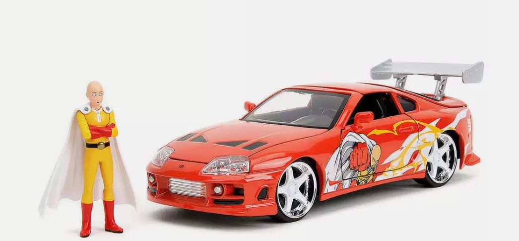 TOYOTA Supra 1995 red with ONE PUNCH MAN figuirne