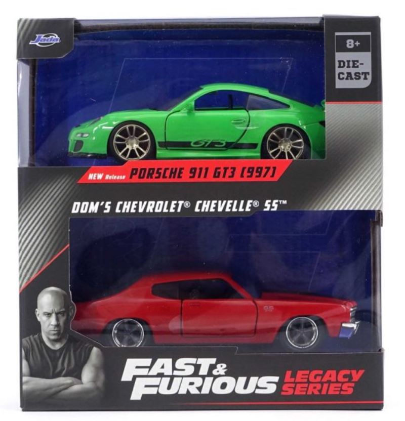 Twin Pack - PORSCHE 911 GT3 RS green with CHEVROLET Chevelle red - FAST and FURIOUS